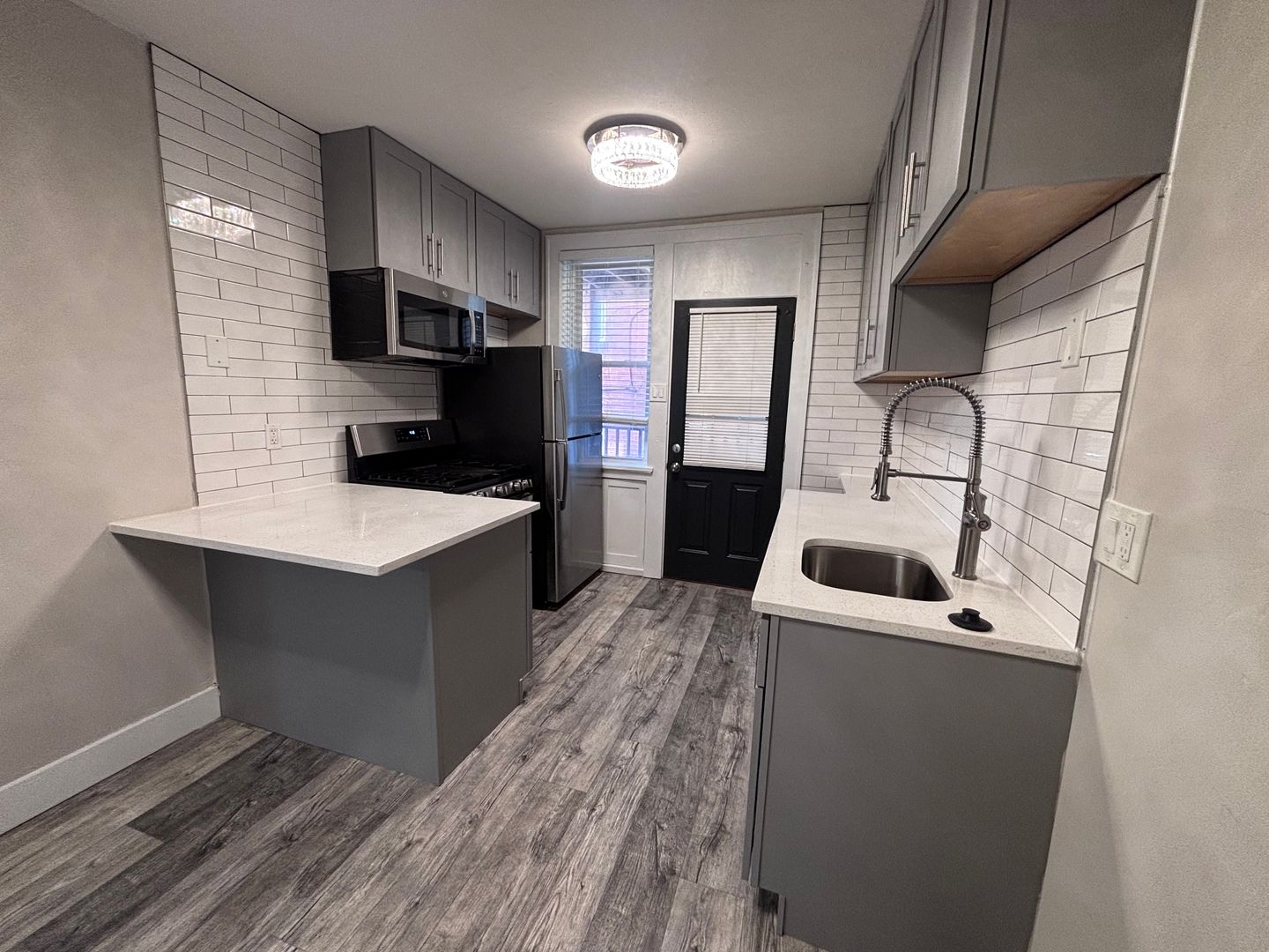 - Updated modern kitchen with granite countertops and ample cabinets