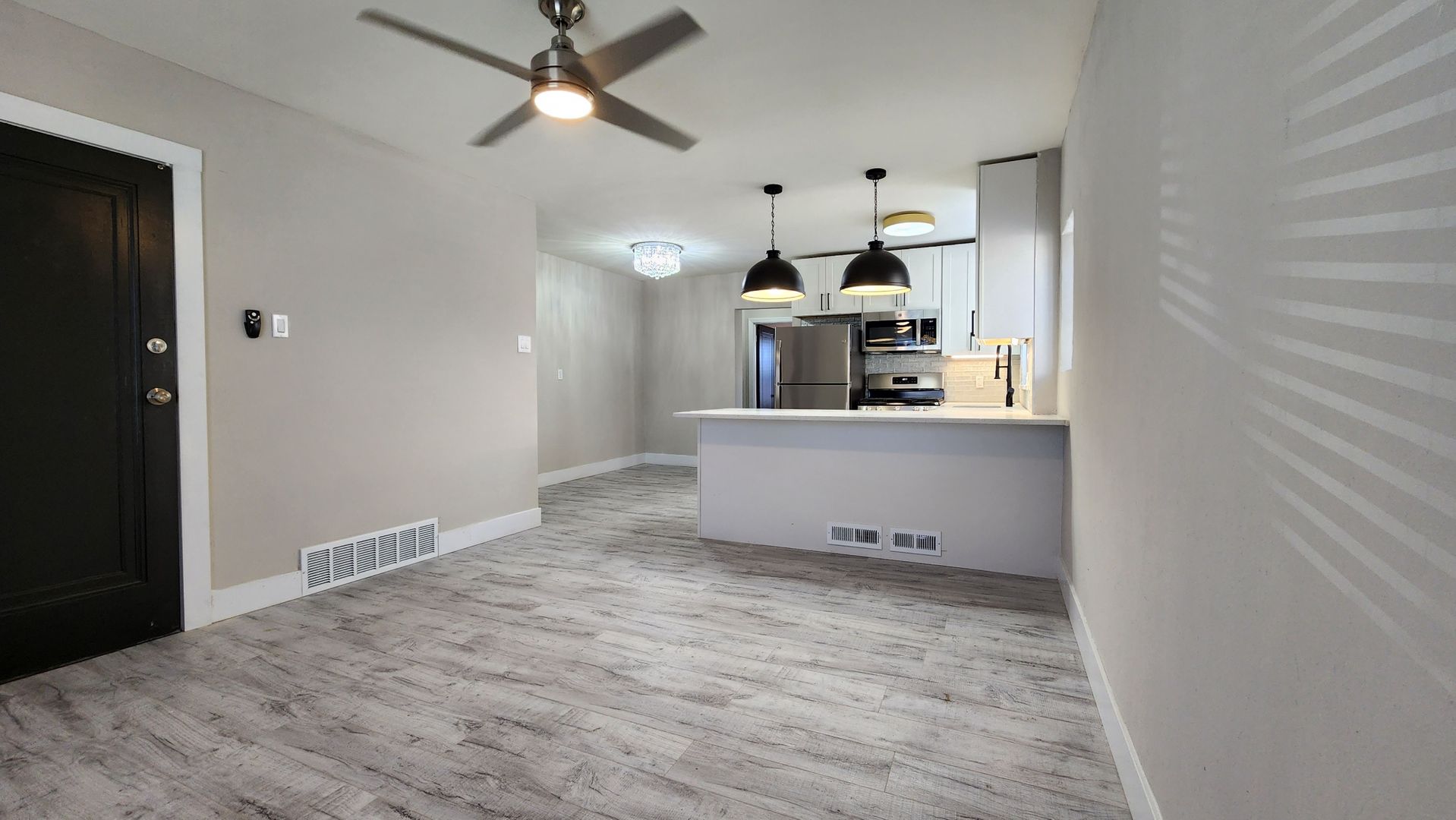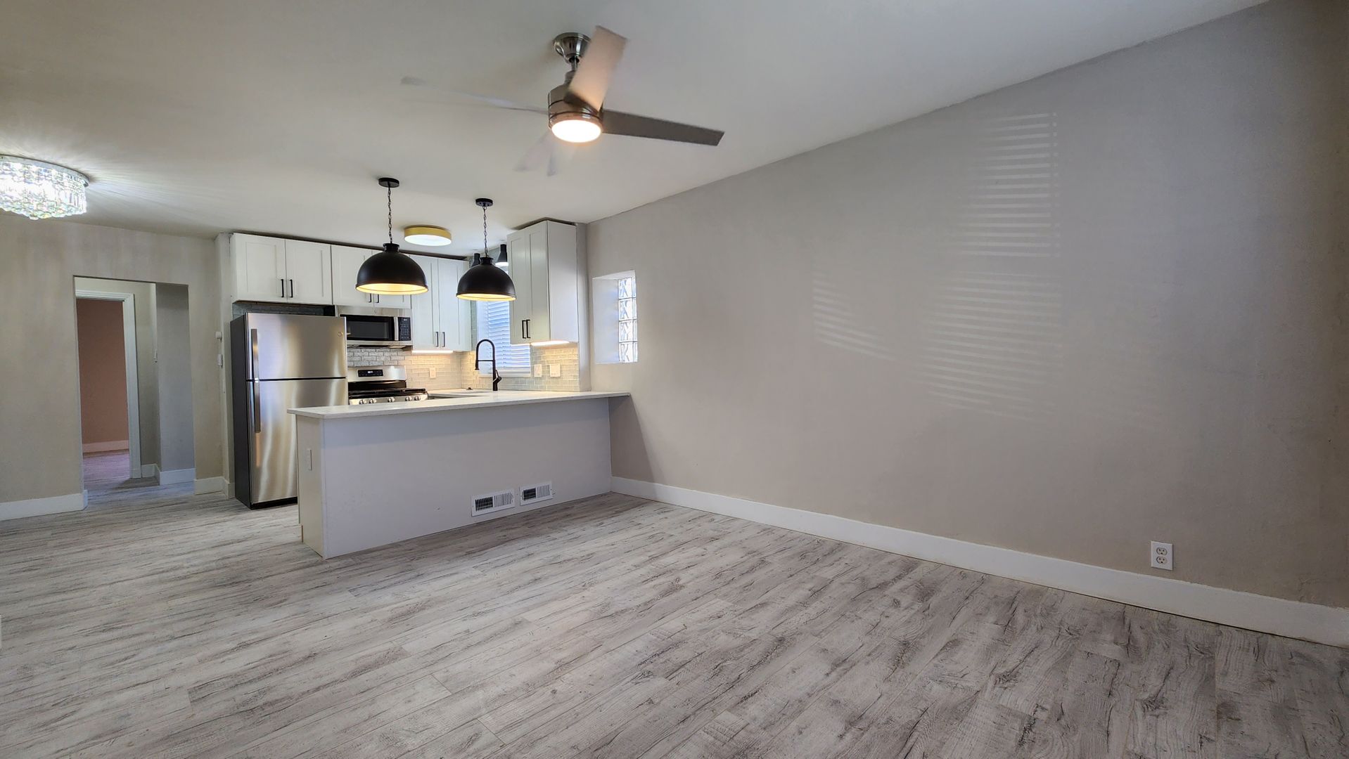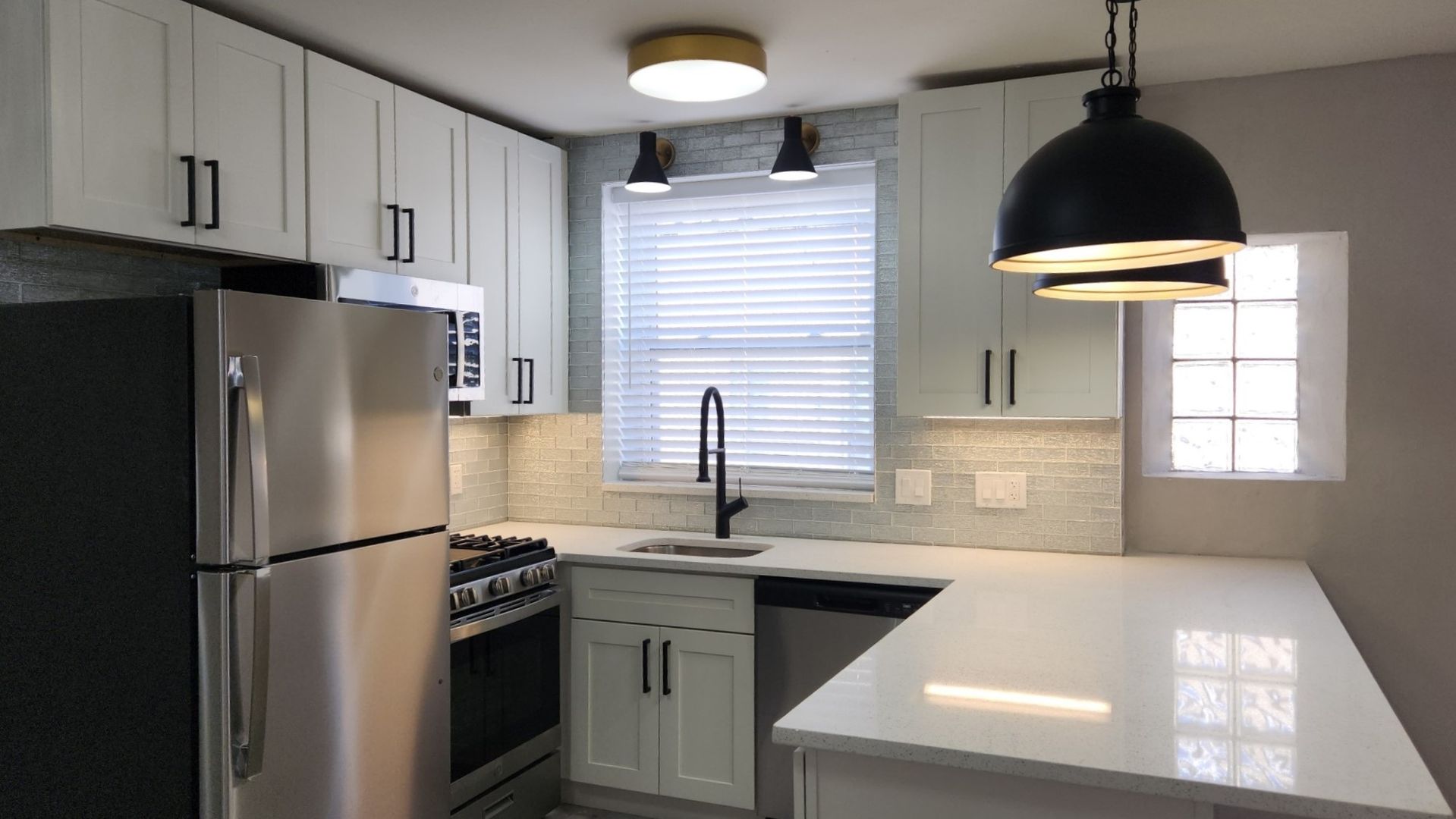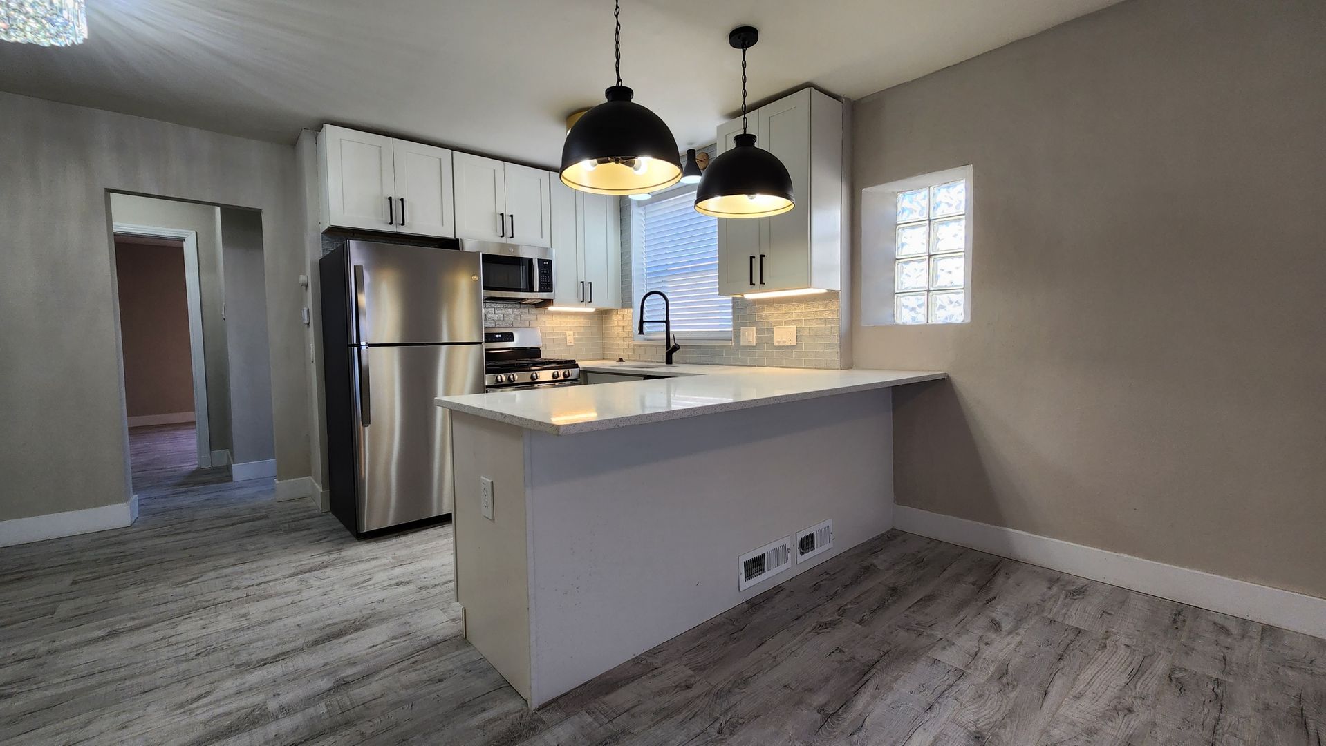 - Open floorplan including brand new custom kitchen with quartz counter tops and new stainless appliances