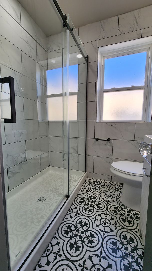 - Beautiful new bathroom vanity and custom built walk in shower stall